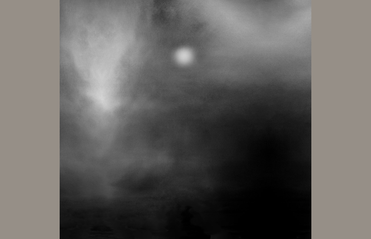‘This hybrid process begins with a single photographic image printed twice. One field, two states. Each print is layered with natural materials gathered from the photographed landscape. The final works are then re-photographed and printed on cotton giclée paper. Here polarity is ever moving, night and day, dark and light, the changing atmospheres of the empty field.’