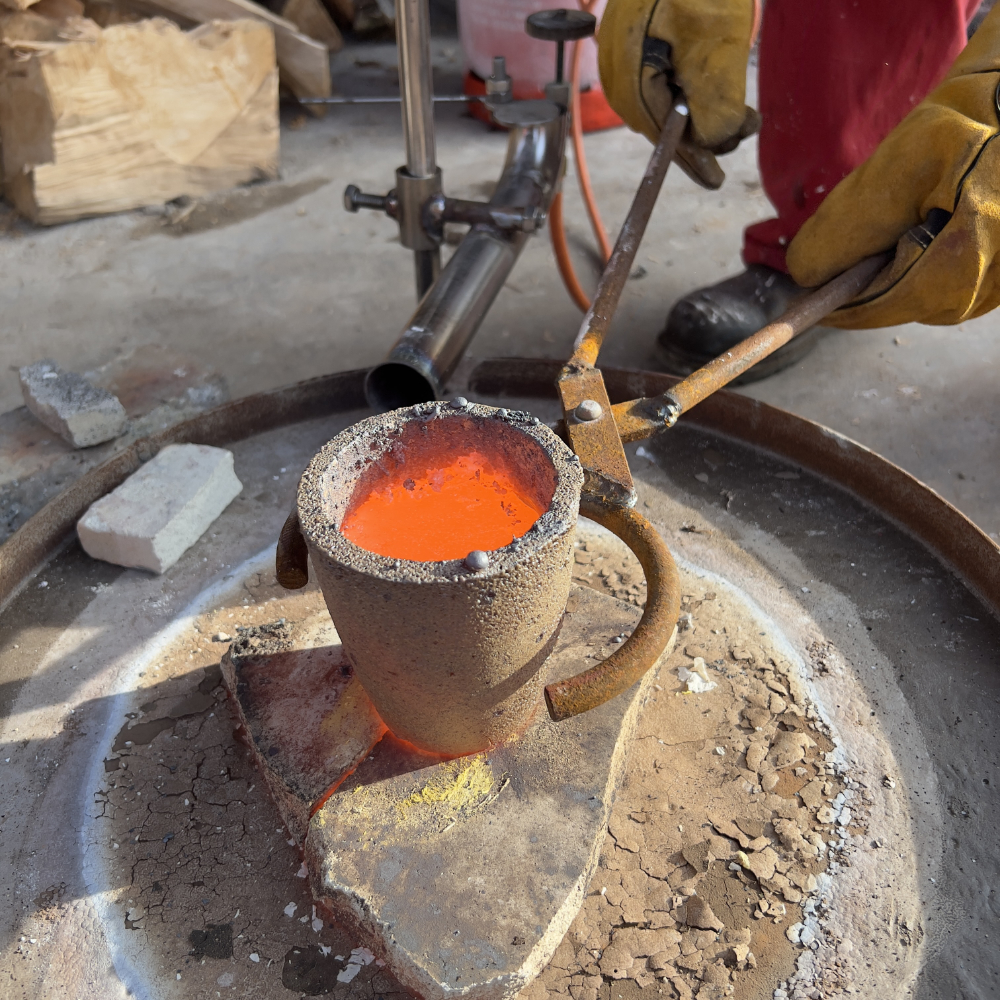 The artistic story at Lossenham began in late 2020 when Russell Burden was invited to walk through the wetland landscape with Andrew Richardson who had just been asked to lead an emerging archaeological project on the site. Through a series of serendipitous events, Russell found himself appointed as ‘Artist in Residence’ for the project, an engagement that has spanned five years. However, this is more than the confluence of material elements and historic landscape; the exhibition also represents a convergence of minds—a partnership between Russell Burden and Melvyn Evans that intertwines imagination with Lossenham’s vernacular materiality. In November 2022, Russell visited Melvyn Evans’ studio, and their conversation quickly illuminated shared sensibilities, marking the beginning of a lasting friendship. By late 2024, Melvyn, who had by then become acquainted with Lossenham, was invited for a year-long residency on the landscape, leading to a natural collaboration.
