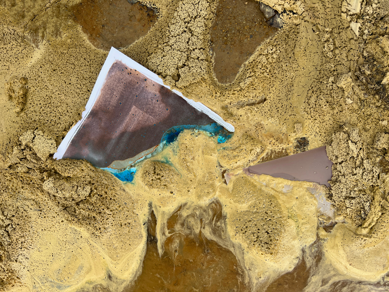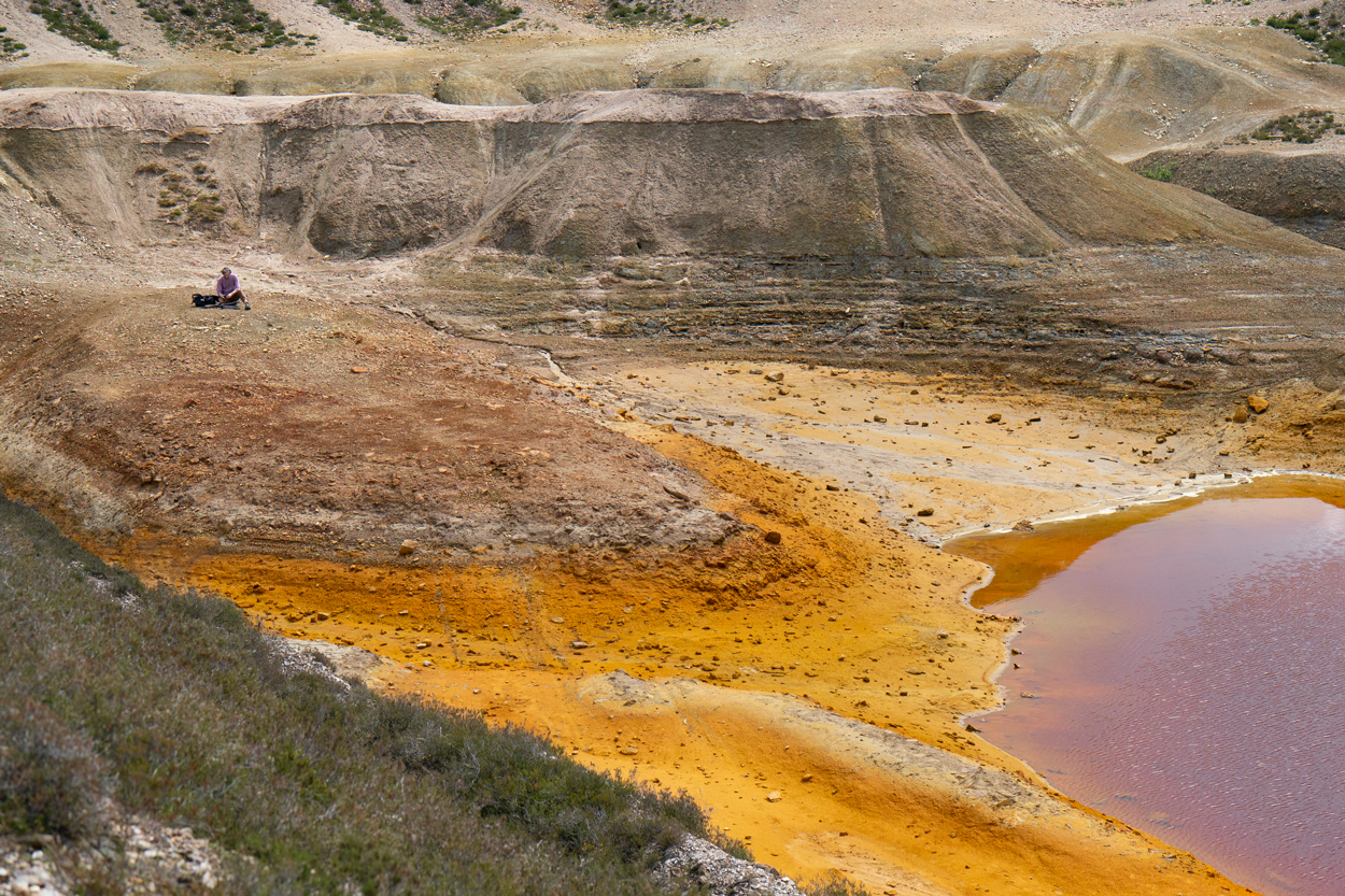 topics: historic geo-extraction, tailings dams/lagoons, chemical mutability, saturation, ephemeral recording processes