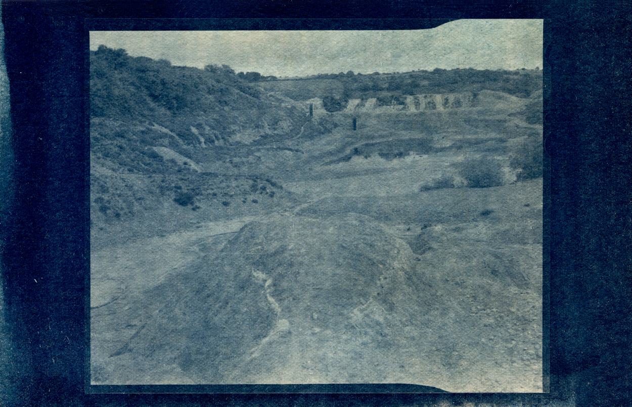 4x5" cyanotype (rb/ct, wheal maid lower tailings lagoon, june 2023)