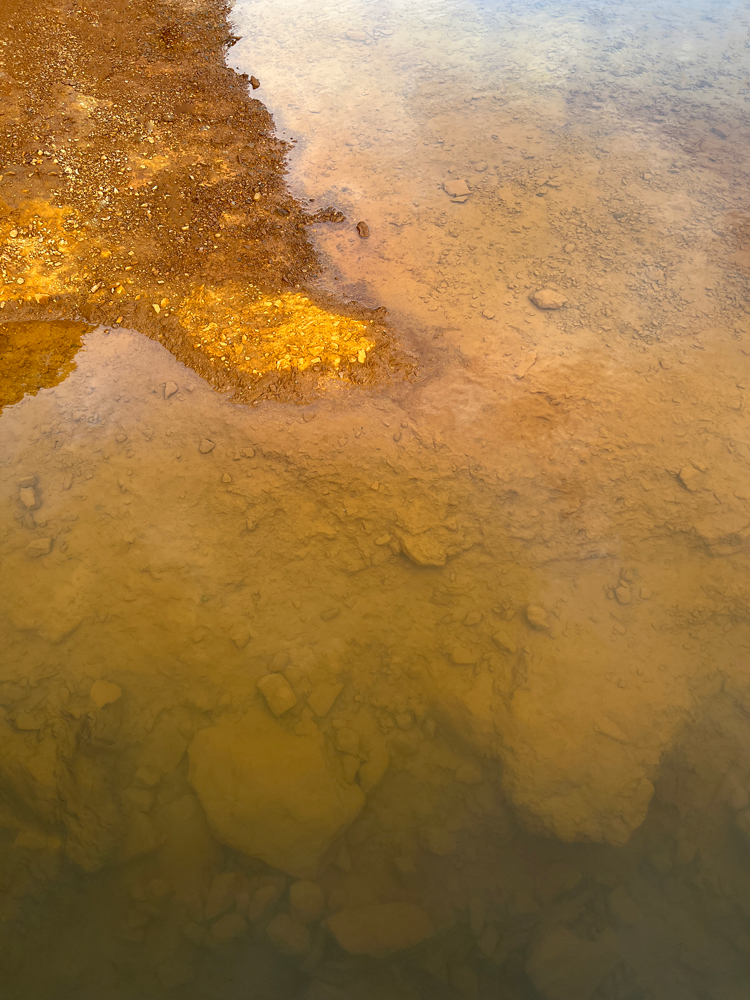 acidophilic bacterial film (rb, pre-dam pond, wheal maid tailings dam, june 2023)