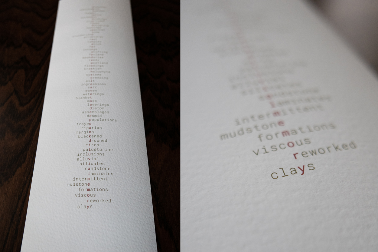 a mesostic visual poem inspired by the historic, hydrological and geological conditions of hexden basin’s alluvial infill and peat accumulation.