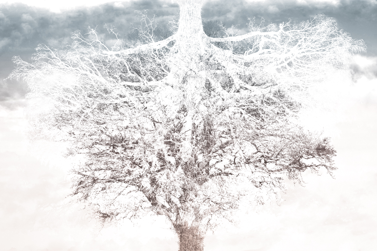 i stand in the lower field above the reed-line. a low vivid light is rising, piercing a filigree of skeletal trees on the horizon. i close my eyes and a black silhouette appears. burnt to my retina, its coral reef edges shift colour as i blink, deep orange then rose. i stare again at the trees, at the gleaming outline of a rising aura. it glows, over-exposing edges, bleaching the image. shutting my eyes again, the tree line shifts to negative, a perfect reversal. this imprint must be the original camera lucida, an after-image held in the dark space of my mind, archived in some category of memory, unlabelled.