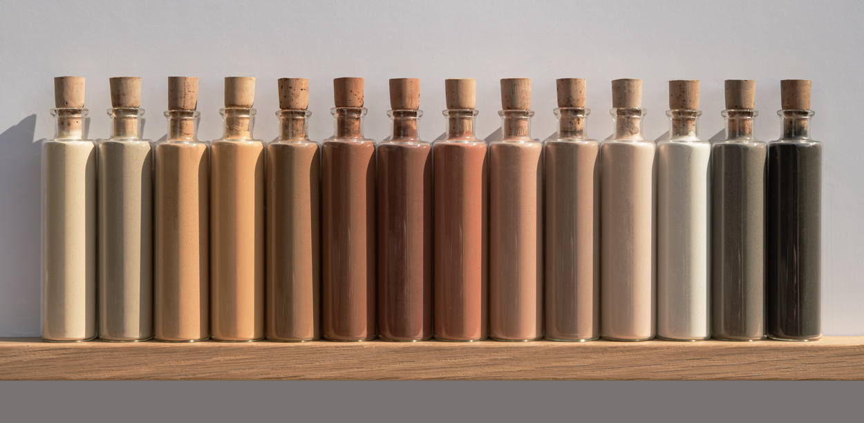 the colours of lossemham (pigment assemblage, vintage specimen jars. lossenham, 2025)